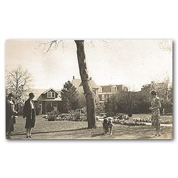 Family members enjoying the backyard of the Snyder home, before it was converted to a funeral home. The area pictured is now the funeral home’s parking lot.